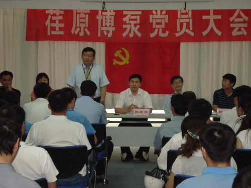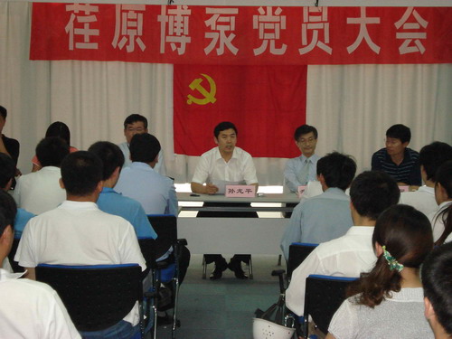 本次黨員大會由黨總支副書記姜作棟同志主持,他首先介紹了黨組織機構的組成:張玉琴同志任黨總支書記,姜作棟同志任黨總支副書記,李正民同志、劉擁民同志、王興春同志分別任統(tǒng)戰(zhàn)委員、組織紀檢委員、文體宣傳委員。荏原博泵黨總支下設管理、生產(chǎn)、質(zhì)量和業(yè)務技術四個黨支部,管理黨支部書記由邱建剛同志擔任,生產(chǎn)黨支部書記由宋遵民同志擔任,質(zhì)量黨支部書記由郝圣同志擔任,業(yè)務技術黨支部書記由梁文運同志擔任。各黨支部通過民主選舉選出了支部委員。在會上,黨總支書記張玉琴同志向全體黨員提出要求,一是加強學習,提高素質(zhì);二是增強黨性,努力工作;三是加強領導,發(fā)揮作用。著重強調(diào)了全體黨員不僅要有較高的政治素質(zhì),更要有很強的業(yè)務能力和技術水平。要一如既往的發(fā)揮黨員的先鋒模范作用,以企業(yè)經(jīng)濟發(fā)展為中心任務,身先士卒,帶頭努力干好工作,在營造團結和諧的工作氛圍中發(fā)揮作用。公司總經(jīng)理孫龍平同志在黨員大會上代表行政領導班子作了重要發(fā)言,指出目前公司正處在打基礎的關鍵時期,邊建設、邊生產(chǎn)、邊供貨、邊發(fā)展。黨組織要充分發(fā)揮政治核心作用,領導工會、共青團等群眾組織,團結凝聚廣大員工,貫徹黨的方針政策,促進企業(yè)健康發(fā)展。