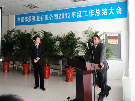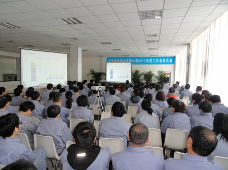 王總在講話中用詳實的數(shù)字,明晰的圖表,做了細致地分析和總結。對2012年之前的工作做了主觀和客觀的原因分析。在2013年的工作總結中,王總用成績和不足來概括:在2013的工作中,營業(yè)工作取得比較突出的成績,取得了訂單創(chuàng)新高;百萬機組項目100%容量訂單的簽訂等亮點,特別可喜的是,在EPC印尼項目中,鍋爐給水泵、循環(huán)水泵、凝結水泵一次性簽單,這在公司歷史上乃至行業(yè)中都是很少見的。在生產方面:發(fā)貨臺數(shù)創(chuàng)公司歷史之最;車間5S管理取得良好進展;產品不合格率得到有效控制。在其他方面:公司采購引入比價采購環(huán)節(jié),降低采購成本;C型泵的改善方面,提高采購批量,降低采購價格,滿足生產各環(huán)節(jié)的需要。不足之處:營業(yè)方面行業(yè)訂單結構不平衡;生產環(huán)節(jié)中生產秩序的保證、外購件的合格率以及設計出圖的時間有待改善;ERP環(huán)節(jié)錄入數(shù)據(jù)的及時性、準確性方面還有待提高等等。