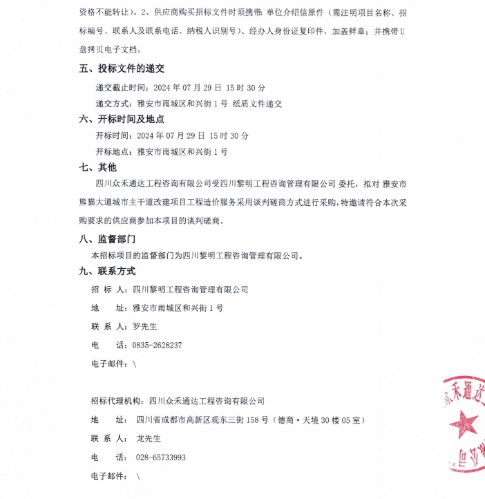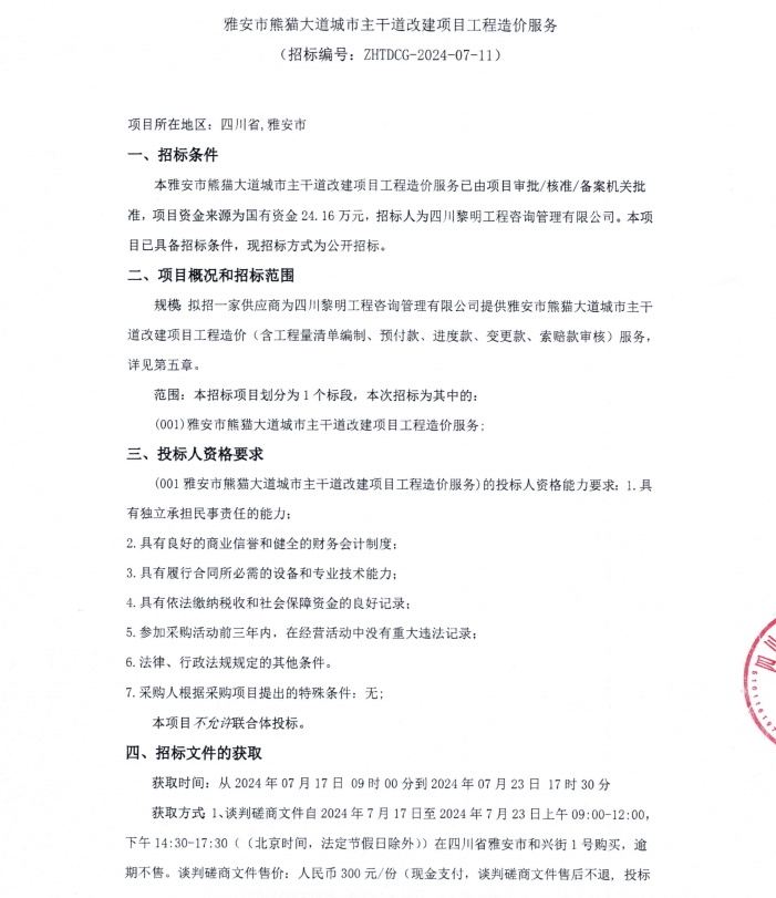 雅安市熊貓大道城市主干道改建項(xiàng)目工程造價(jià)服務(wù)公告